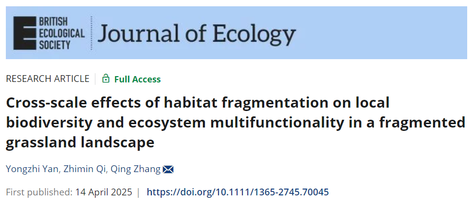 张庆教授团队在生境破碎化对草地生物多样性和生态系统功能影响方面取得了最新进展。研究成果以“Cross-scale effects of habitat fragmentation on local biodiversity and ecosystem multifunctionality in a fragmented grassland landscape”为题发表于生态学经典学术期刊《Journal of Ecology》。