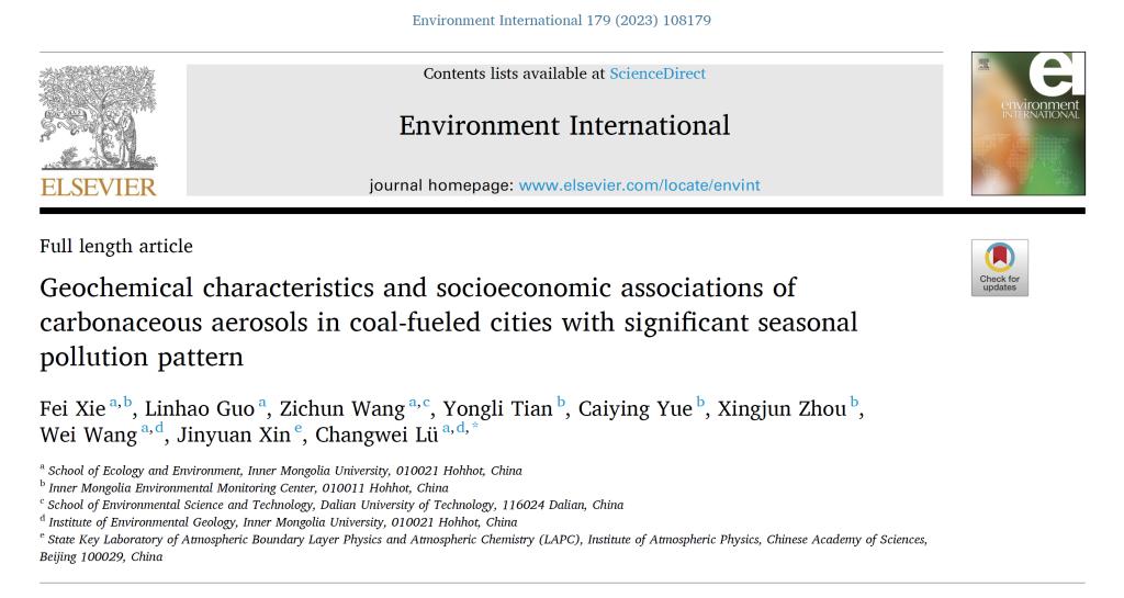 3. Geochemical characteristics and socioeconomic associations of carbonaceous aerosols in coal-fueled cities with significant seasonal pollution pattern. Environmental International, https://doi.org/10.1016/j.envint.2023.108179