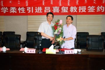 柔性引进吕喜玺教授签约仪式在学术会议中心6号会议室举行,来自新加坡国立大学的吕教授正式被聘任为我校环境与资源学院的兼职教授。张吉维副校长主持会议,赵吉院长介绍了吕教授的工作及科研经历,陈国庆校长与吕喜玺教授签订柔性引进协议并讲话。参加会议的领导还包括党政办铁勇主任,人事处郭维生、马慧吉、李国珍副处长,科学技术处王志平处长,国际合作与交流处赵勇处长,环境与资源学院李笑春书记及贾志斌副院长。